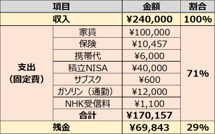 わかったことが給料の7割が固定費で消えているということ。